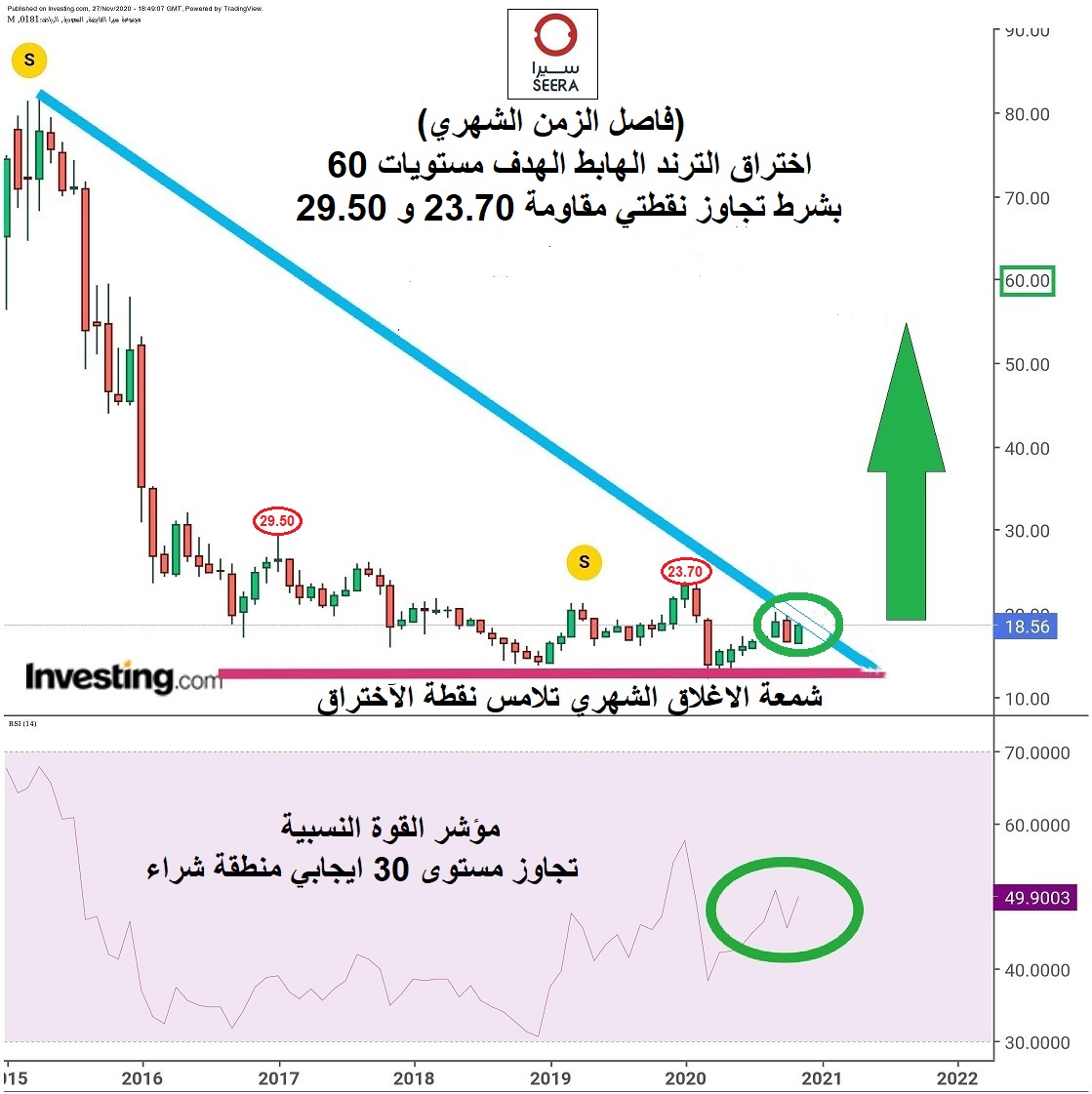 تحليل سهم سيرا + سهم سبكيم وتوضيح نقاط الدعم والمقاومة والاهداف للسهمين.